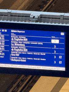 Berlin’s central station (Hbf) is enormous and has every convenience you’d want: food, shops, and even showers (10€ per person). For long train rides (4+ hours), I always recommend grabbing food before boarding. Many long-distance trains have dining cars, but options can be limited or sold out—and stops are often too short to hop off for snacks.